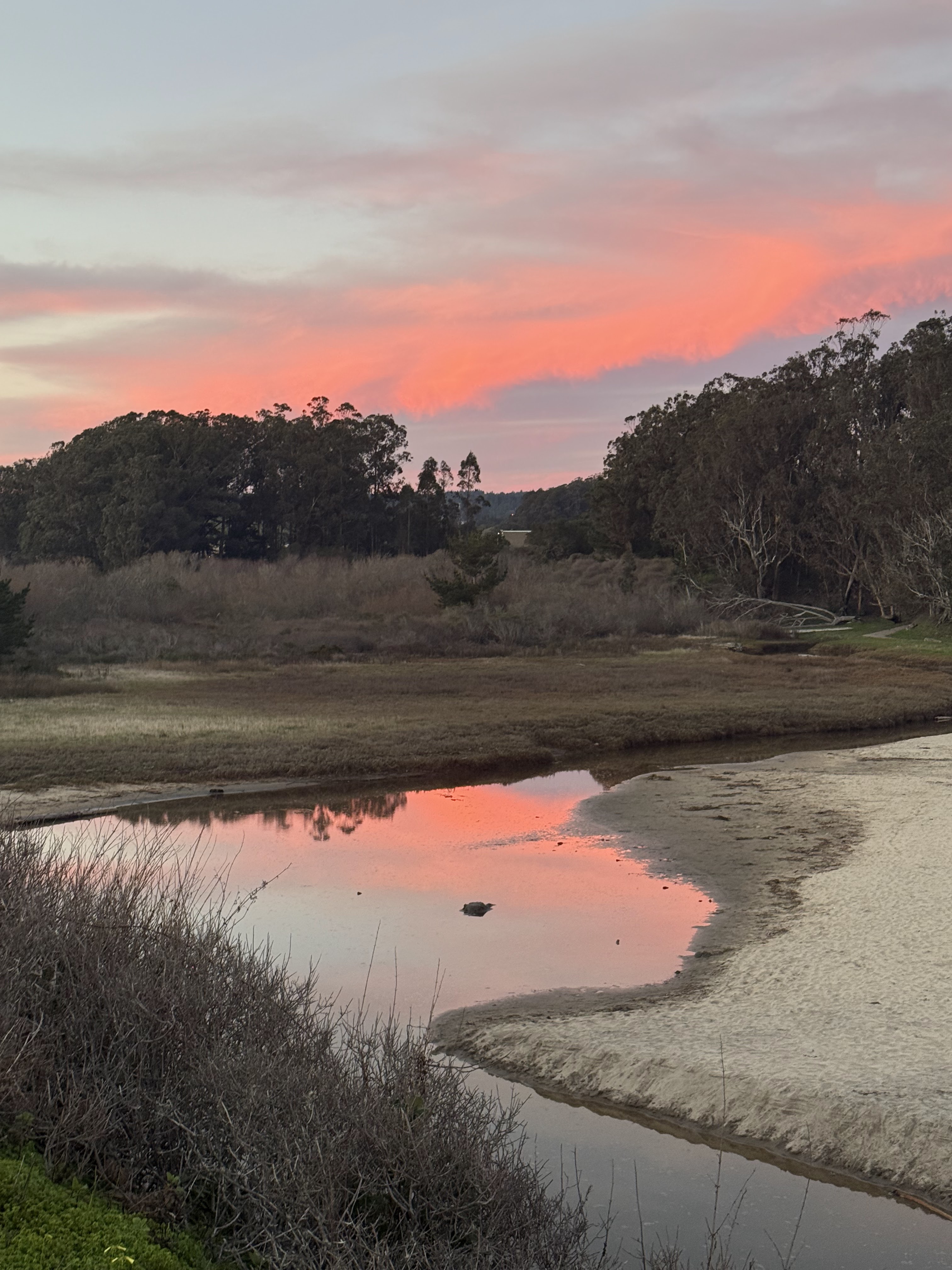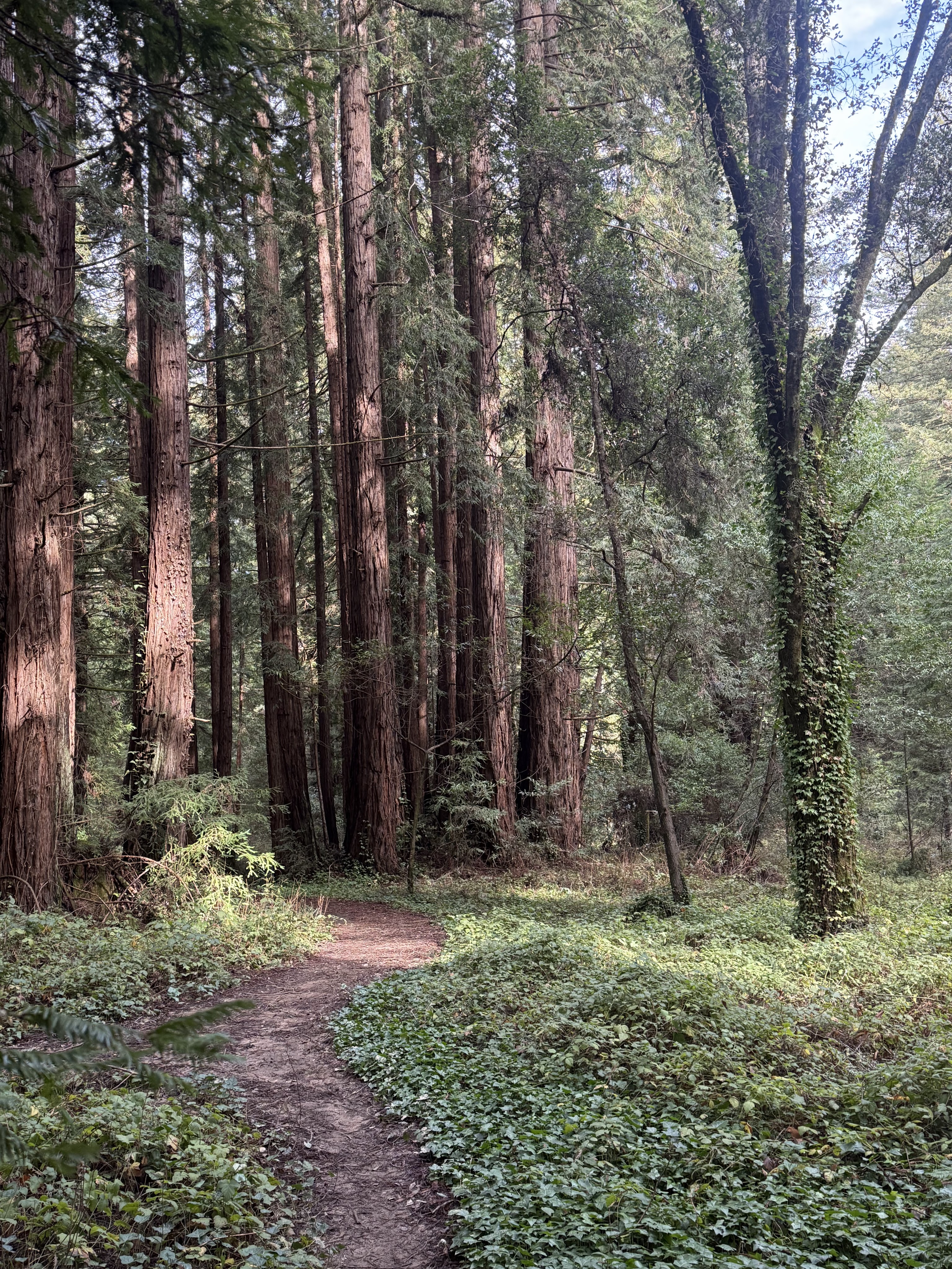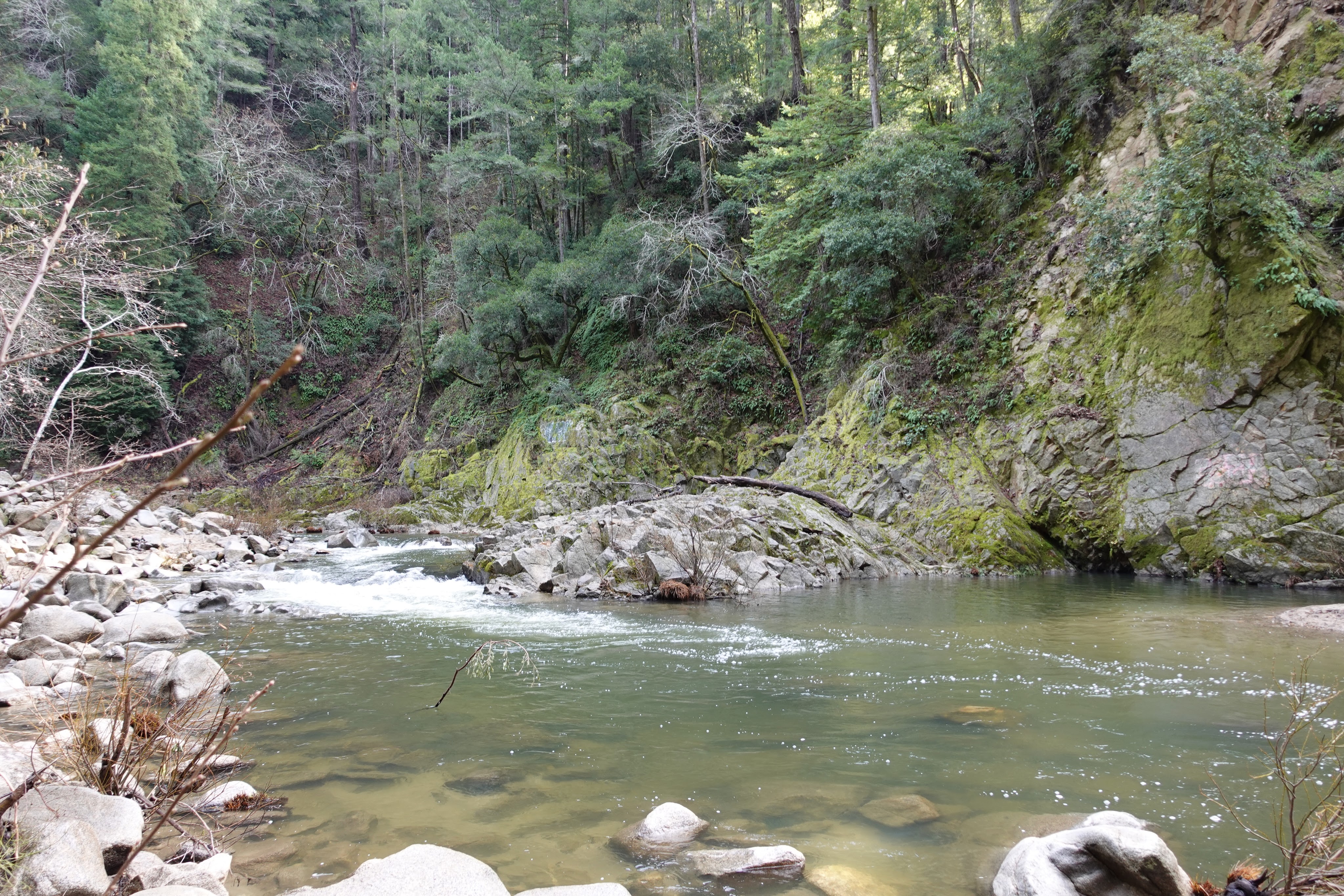Henry Cowell Redwoods State Park and surrounding areas is such an amazing area with giant redwoods and rivers running through. There is a swimming hole in Henry Cowell called Garden of Eden, which tends to be a popular spot among the UCSC students. However, when it’s cold in January, I tend to get the place to myself. I started the morning just reading by the river under the redwood trees as the sun started to make its way over to me. The water levels were very high from recent rains which also makes the current much stronger than other times of the year. Always be careful swimming in strong currents, hold onto something and be careful not to let the current take you downstream if it doesn’t shallow out. I weighed my options of jumping in and it was too cold early in the morning, so I went on to my next hike. After a windy drive through towering redwoods, I got to the West side of the UCSC campus. The campus has two lots that are free on weekends, West remote and East remote. The campus is surrounded by state parks on 3 sides so there are many trails you can do from each lot. From the West remote parking lot, I went to Wilder State Park where I have a hike I typically do this time of year. When I was a student I also spent a lot of time in these areas so I know it very well without a map. From West remote, crossing Empire Grade Road, there is a huge field before the redwoods. The field is usually vibrant green and sometimes poppy blooms depending on the time of year. I usually walk down the field, along the forest line until I get to a farm gate, then turn into the redwoods. From there, the trail goes down into a redwood canyon carved by a river running through. There is a log crossing there, which I always force myself to do because I find it quite nerve racking. I enjoy facing my fears head on (in a safe manner) so I always come back to this. The forest is so wonderfully quiet, just the sound of rustling leaves and a running stream. If you continue up past the log crossing, there is a kiln structure and some more open fields.
