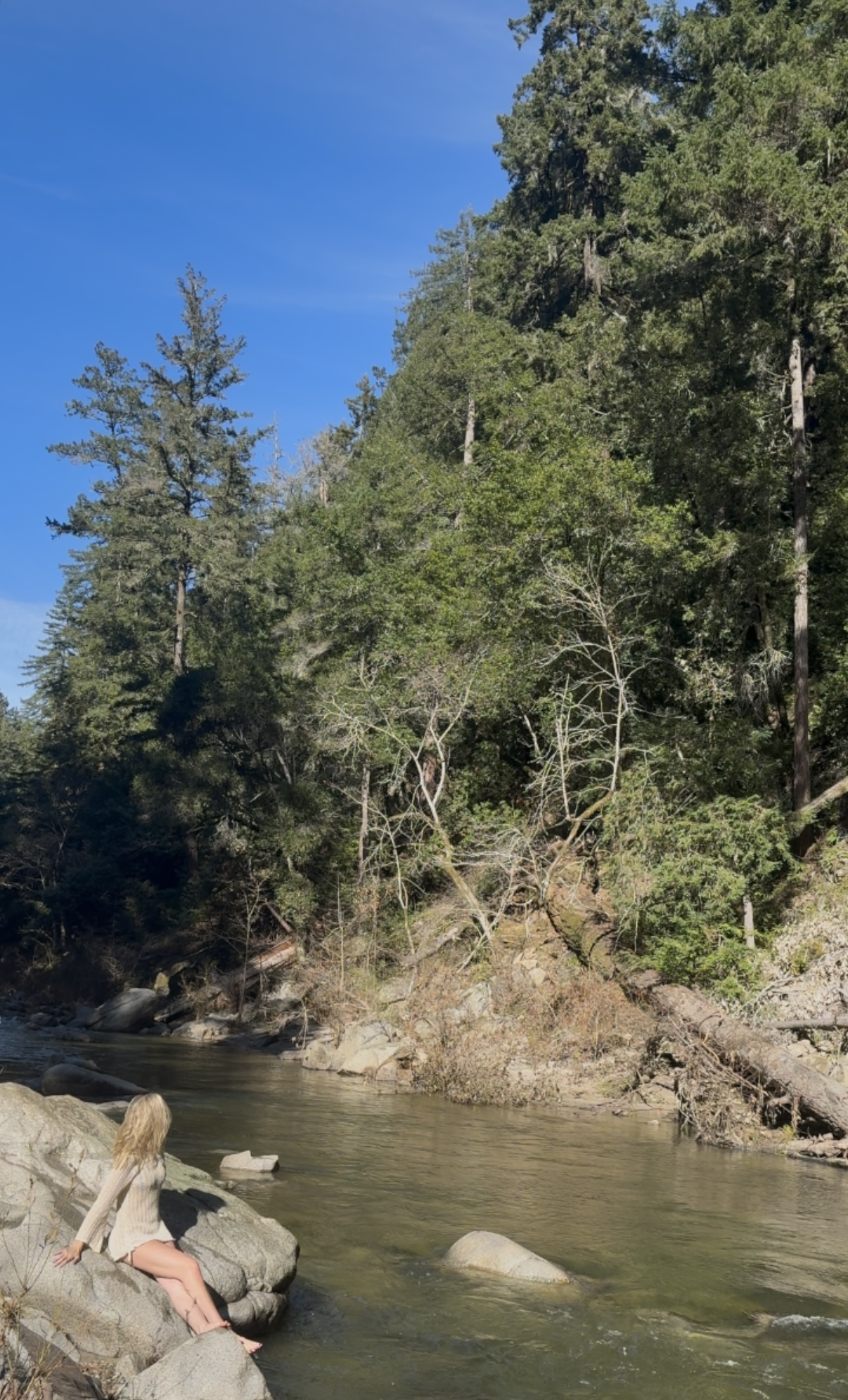 From there I headed to Swanton Berry Farm, also along Highway 1, North of Santa Cruz, for some coffee and fruit. Except of course they had chocolate covered strawberries so I got that too. This is a very cute family owned farm, at the right time of year you can pick your own strawberries, they have a play area for kids and are located on the bluffs above the ocean in a beautiful area. From Swanton, I headed back to Garden of Eden, determined to get my cold plunge in. This time I go it’s midday and there’s plenty of people there, but the great thing about Garden of Eden is that you can climb and swim to different areas of the river to get some privacy. So I crossed the boulders going up the river and found a sun spot nobody was hanging in. It was quite cold and the current was very strong but it was very worth it to take a dip. Be careful when the current is this strong to hold on so you don’t get taken downstream over rocks and branches!